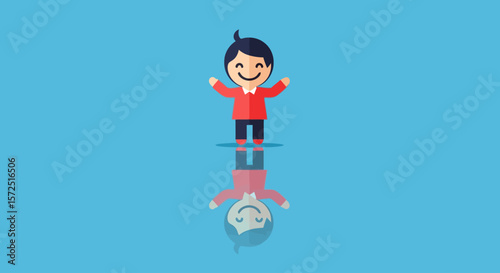 Reflected Joy: Cartoon Boy's Happy Reflection