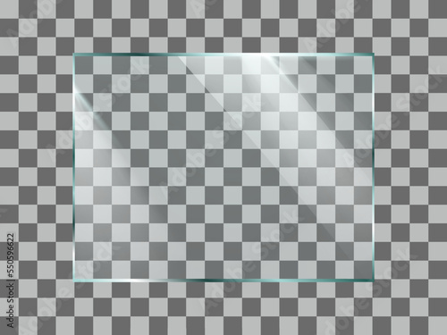 Reflecting glass plate or banner. Rectangle clear window with light reflections. Realistic vector illustration isolated on transparent background.
