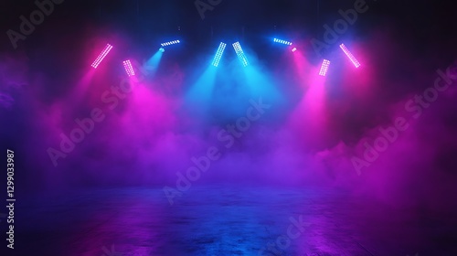 Reflective floor with vibrant stage lights and mystical fog high resolution picture
