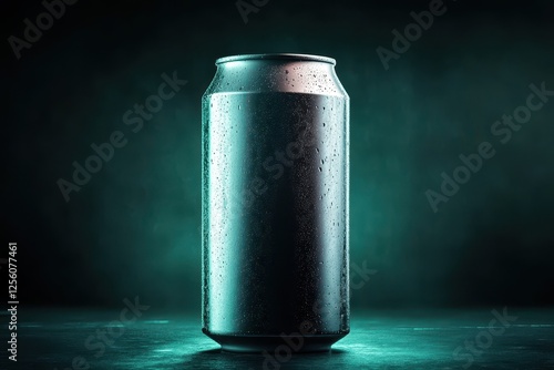Reflective metallic can illuminated by soft blue light creates a moody atmosphere in a creative studio setting