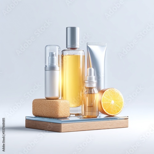 Refreshing citrus skincare products display studio setting product photography minimalist background