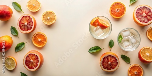 Refreshing Citrus Slices and Icy Beverages Arranged on a Light Beige Background for a Vibrant and Summery Composition