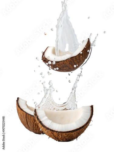 Refreshing Coconut Water Splash Tropical Fruit Hydration Summer Healthy Drink Pure Clean White