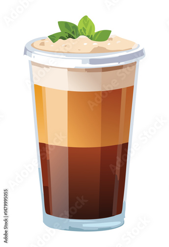 Refreshing Cold Coffee with Milk and Topping - Vector Illustration