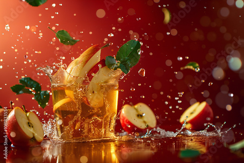 Refreshing Fresh Fruit Juice with Ice and Citrus Slices, Healthy Tropical Beverage in a Glass
