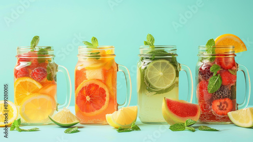 Refreshing fruit cocktails in jars, perfect for warm summer days.