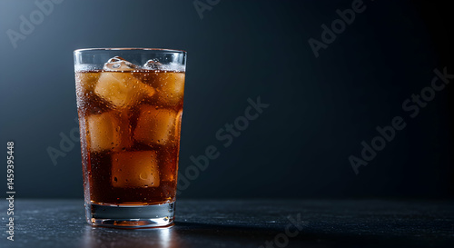 Refreshing Glass of Dark Carbonated Beverage with Ice Cubes