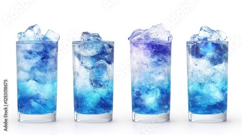 Refreshing Glasses of Ice-Cold Blue Beverages