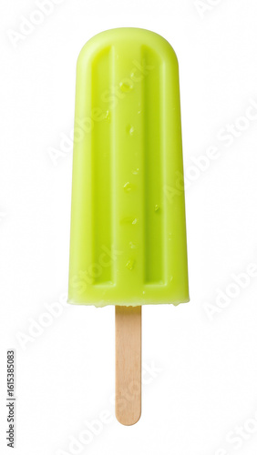 Refreshing green popsicle with wooden stick, perfect for hot days and summer treats. Enjoy coolness and flavor