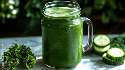 Refreshing Green Smoothie in Mason Jar with Kale and Cucumber