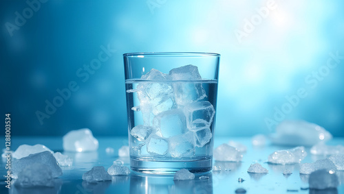 Refreshing ice-cold water in a crystal-clear glass with condensation, set in a professional studio environment. Perfect for advertising hydration, wellness, and beverage-related content