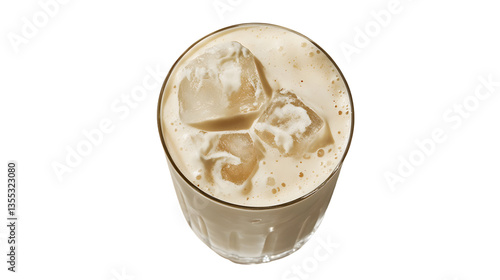 Refreshing Iced Beverage in a Glass with Ice Cubes and Frothy Top