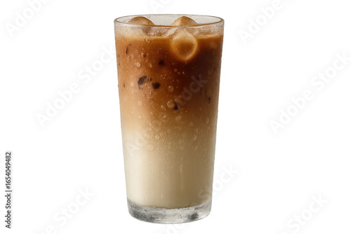 Refreshing Iced Coffee Latte in a Tall Glass with Condensation and Ice