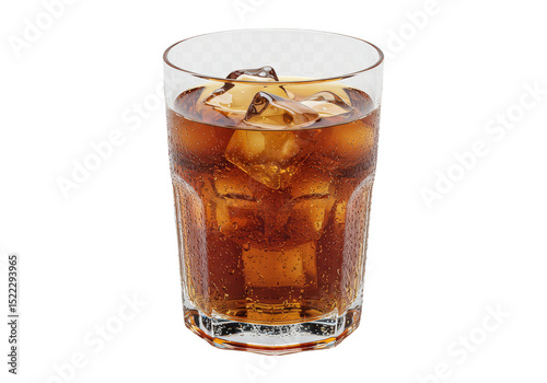 Refreshing Isolated Transparent Glass of Cola Drink with Ice Cubes