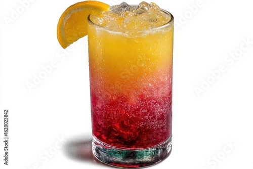 Refreshing Layered Drink Garnished with Orange Slice and Ice