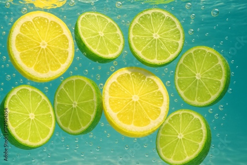 Refreshing Lemon and Lime Slices in Bubbling Water - Vibrant Citrus Fruit Concept