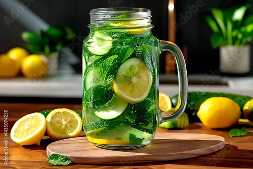 Refreshing lemon mint drink recipe home kitchen beverage inspiration bright environment close-up view hydration concept