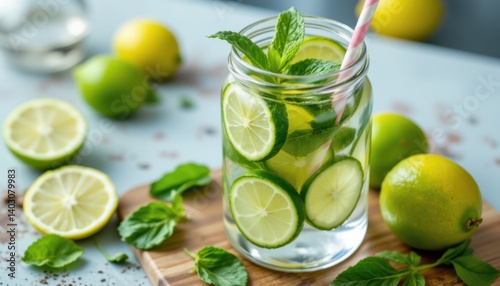 Refreshing lime mint drink recipe kitchen beverage clean close-up refreshment