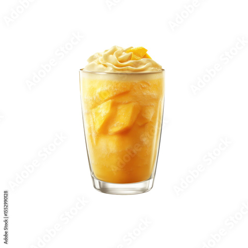 Refreshing Mango Smoothie with Whipped Cream in Glass