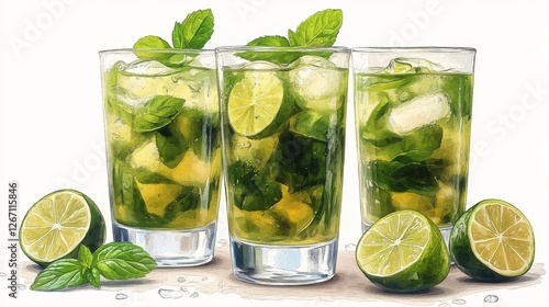refreshing mojito cocktail with lime isolated on transparent background