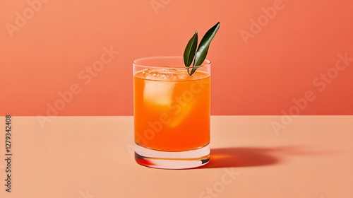 Refreshing orange cocktail in a rocks glass, garnished with a sprig. Perfect for a summer day!
