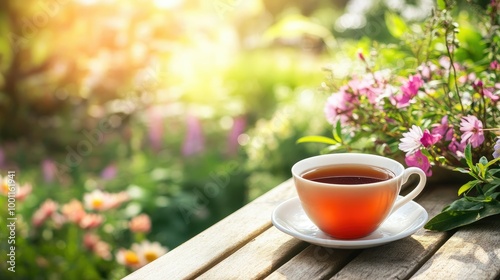 Refreshing Tea Moment in a Garden Setting
