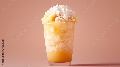 Refreshing Tropical Drink with Shaved Ice and Coconut on Top