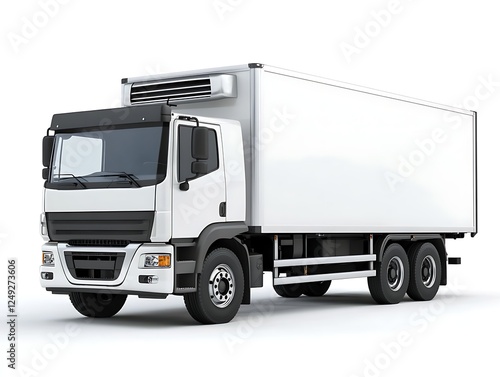 Refrigerated Delivery Truck: A pristine white refrigerated delivery truck with a sleek design, ready to transport goods across the country.
