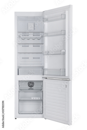 Refrigerator Isolated on White Background. Modern Kitchen and Domestic Major Appliances
