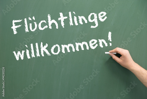 Refugees Welcome / Chalkboard with the german words Refugees Welcome