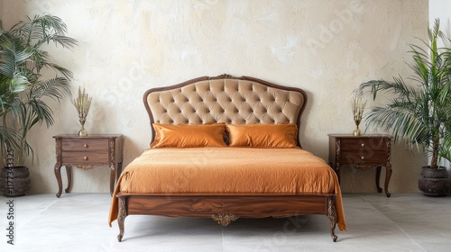 Regal Indian-Style Modern Bedroom with Silk Duvet and Brass Inlay Side Tables - Cinematic Ultra-Detailed Interior Design