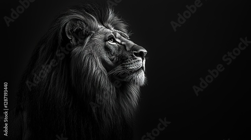 Regal male lion portrait isolated on white animal photography studio environment close-up majestic essence