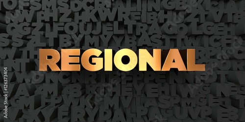 Regional - Gold text on black background - 3D rendered royalty free stock picture. This image can be used for an online website banner ad or a print postcard.