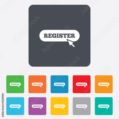 Register with cursor pointer icon. Membership.
