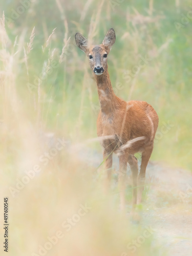 Rehgeiß (Ricke) auf Forstweg, Steiermark, Österreich (Capreolus Capreolus)