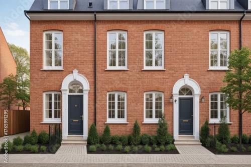 Reihenhäuser im klassischen roten Ziegelsteinstil mit modernen Details