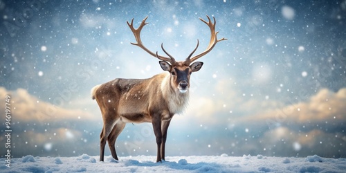 Reindeer in a Snowy Landscape, Digital Art, Winter Animal, Snow, Reindeer