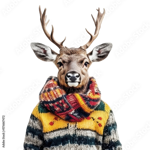 Reindeer in a Winter Sweater for Holiday or Seasonal Promotions on transparent background