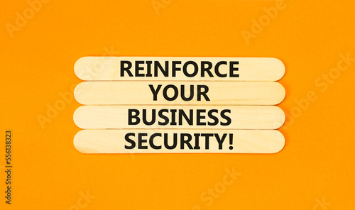 Reinforce your business security symbol. Concept word Reinforce your business security on sticks. Beautiful orange background. Business reinforce your business security concept. Copy space.