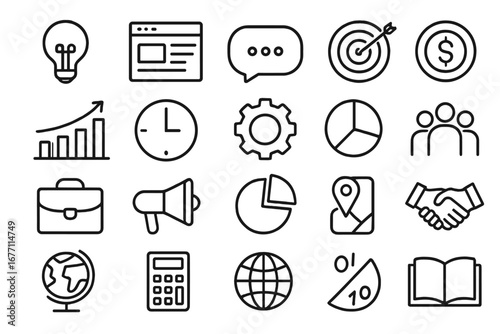 Related image collection with editable stroke for infographics, articles, books, flyers, banners, marketing materials, vector cartoon illustrations with transparent background