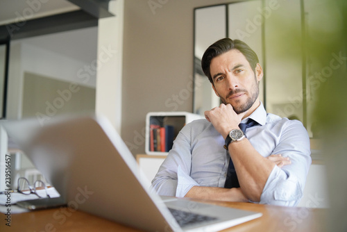 Relaxed attractive businessman working in modern office