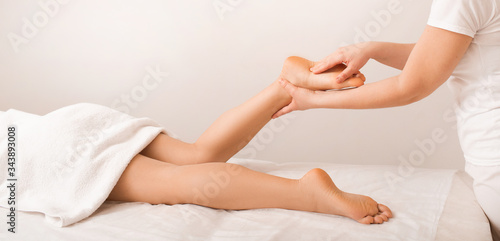 Relaxed foot massage, reflexology. Women getting foot massage, close-up