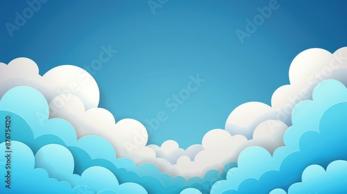 Relaxing blue sky with fluffy white clouds in a simple cartoon design. Vector illustration in flat style with cloud border.
