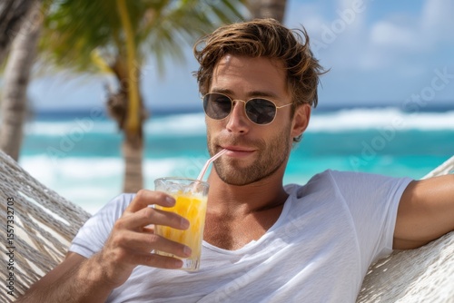 Relaxing by the beach with a refreshing drink in a tropical paradise