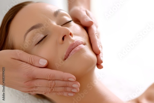 Relaxing facial massage at luxury spa with professional therapist focusing on anti aging skincare, wellness and beauty treatment for glowing healthy skin. Rejuvenation