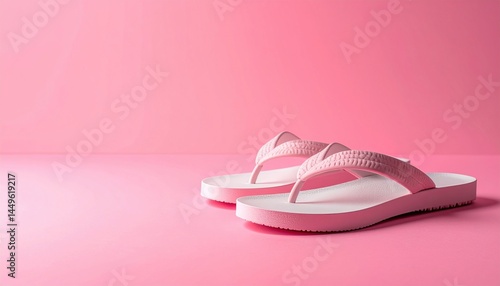 Relaxing summer vibes beachside flip flops pink background minimalist fashion concept