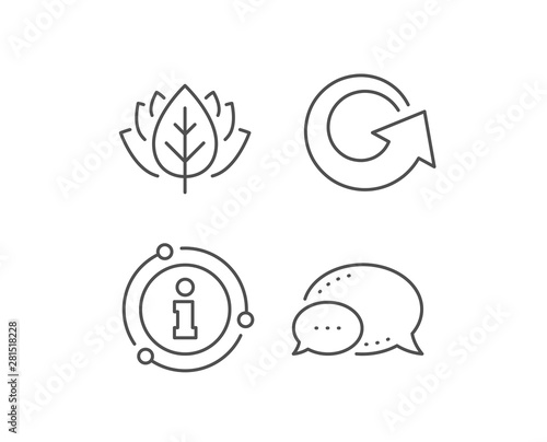 Reload arrow line icon. Chat bubble, info sign elements. Update Arrowhead symbol. Navigation pointer sign. Linear reload outline icon. Information bubble. Vector