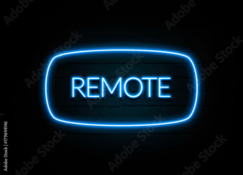 Remote - colorful Neon Sign on brickwall