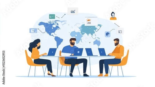 Remote team collaboration global workspace digital illustration modern office aerial view teamwork concept