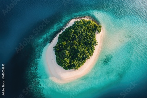 Remote tropical island in turquoise lagoon. A tranquil natural paradise.
